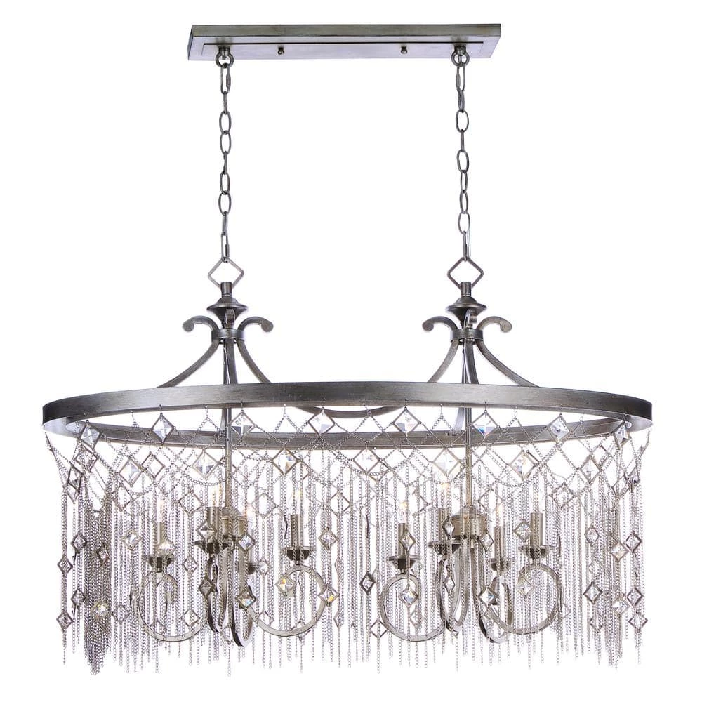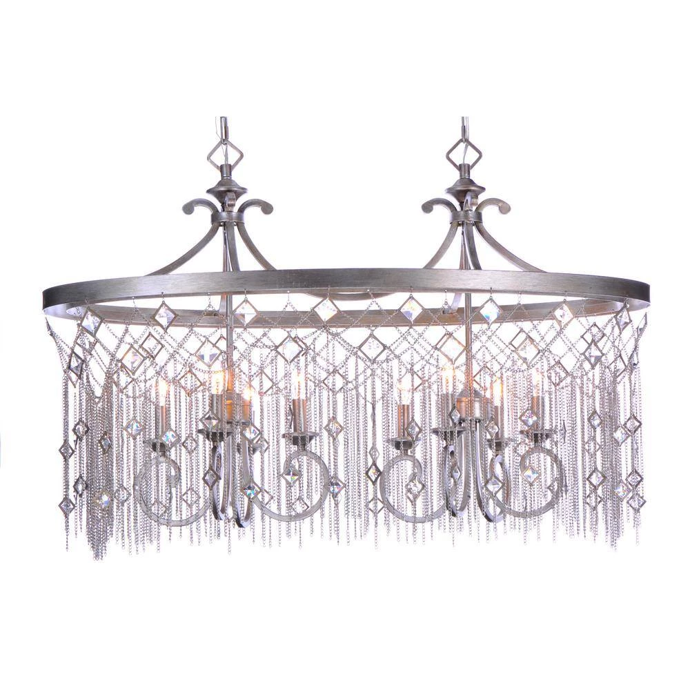 - Diamond shape crystals float in a web of jewelry grade chain supported by a metal frame finished in our exotic silver mist; each fixture is delicately draped by hand from skilled artisans to create these original lighting art forms