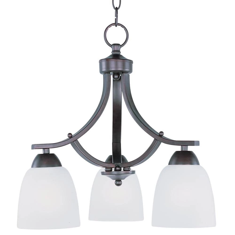 This transitional design works in any style home. Intersecting, rectangular tubing finished in your choice of Satin Nickel or Oil Rubbed Bronze gently curves to support simple line Frost glass shades. This collection will enhance your home with a perfect mix of form and function.