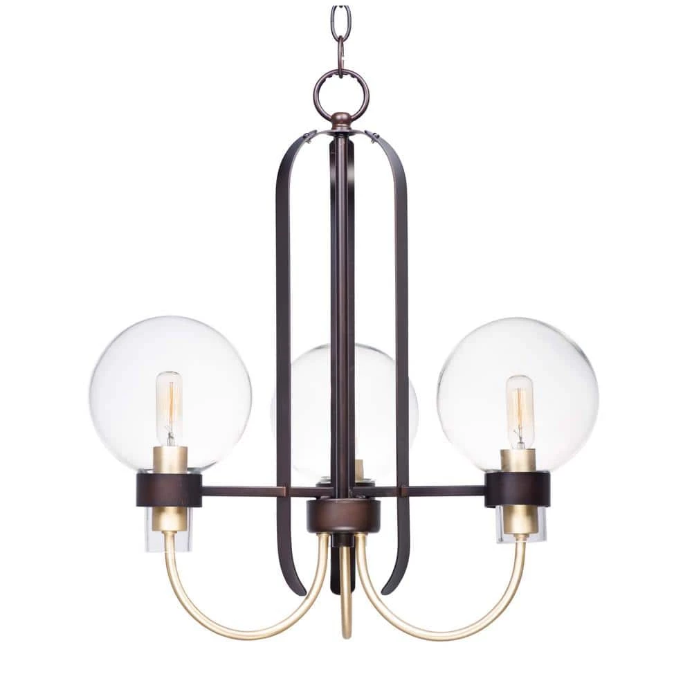 The Bauhaus 20 in. W 3-Light Bronze/Satin Brass Chandelier with Clear Shade is a great addition to any indoor space. This high quality light can be used in a variety of applications. Provide both function and style to your indoor area with this wonderful fixture.