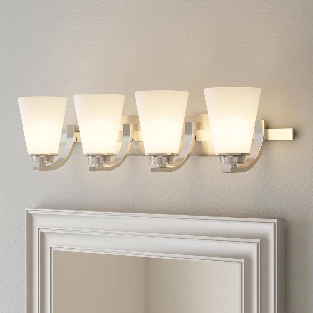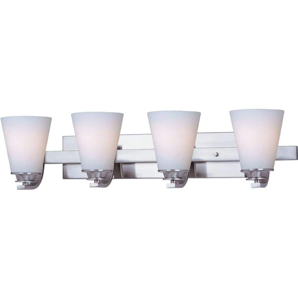 Maxim Lighting’s Conical Collection features Satin White cone-shaped glass that is supported by a sweeping rectangular tube arm finished in Polished Chrome or Satin Nickel. This interesting marriage between contemporary geometric shape and traditional styling is a unique addition to any bathroom. Shop the collection for one, two, three, and four light Bath Vanities.