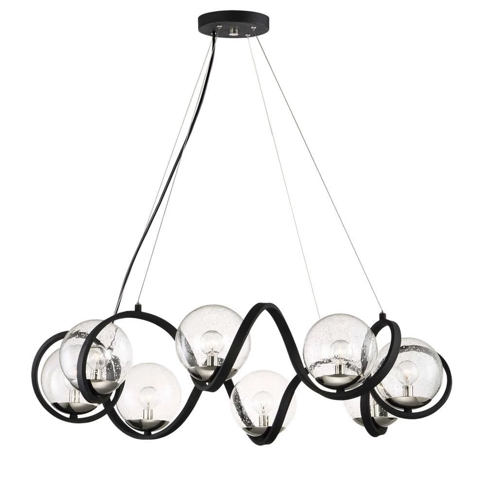 The Curlicue 8-Light Black/Polished Nickel Pendant is a great addition to any indoor space. This high quality light can be used in a variety of applications. Provide both function and style to your indoor area with this wonderful post light.