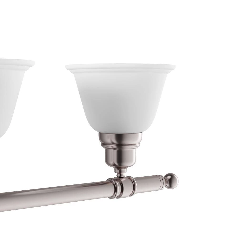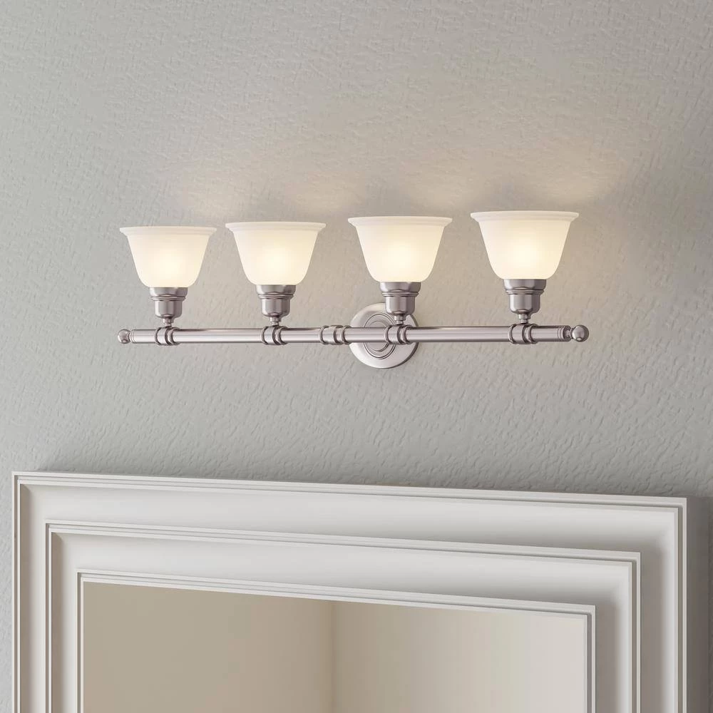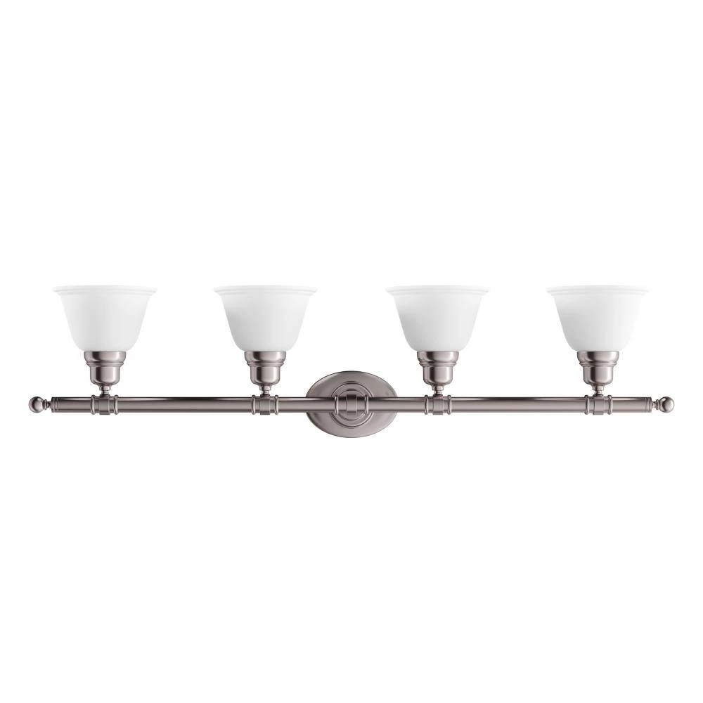 - 4-light satin nickel finish bath vanity