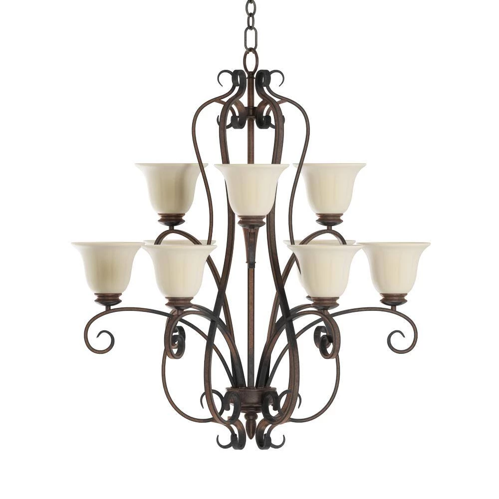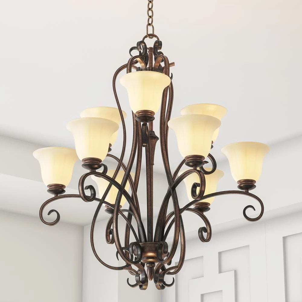 Add transitional illumination to your space with this 9-light chandelier from the Fremont collection. The Wilshire glass shades and platinum dusk finish make it perfect for contemporary and modern interiors. Eye-catching and stylish, it adds visual interest to a dining room, living room or kitchen. It uses nine bulbs (sold separately) and includes all the hardware for an easy installation.