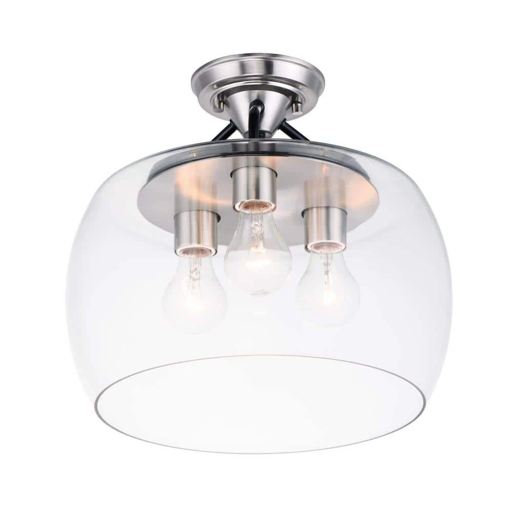 The Goblet 13.5 in. Wide 3-Light Black/Satin Nickel Semi-Flush mount is a great addition to any indoor space. This high quality light can be used in a variety of applications. Provide both function and style to your indoor area with this wonderful light.