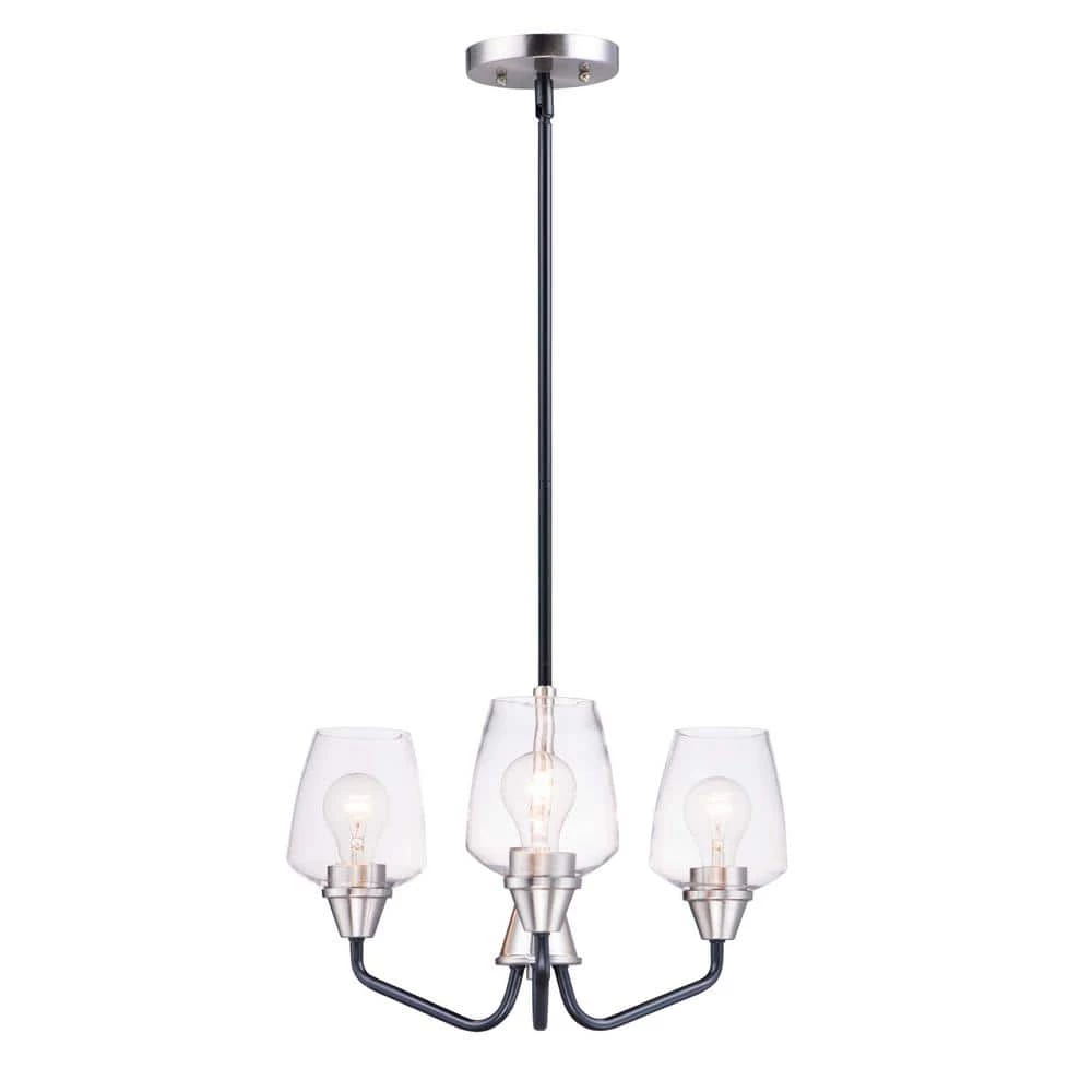 The Goblet 19 in. W 3-Light Black/Satin Nickel Chandelier with Clear Shade is a great addition to any indoor space. This high quality light can be used in a variety of applications. Provide both function and style to your indoor area with this wonderful fixture.