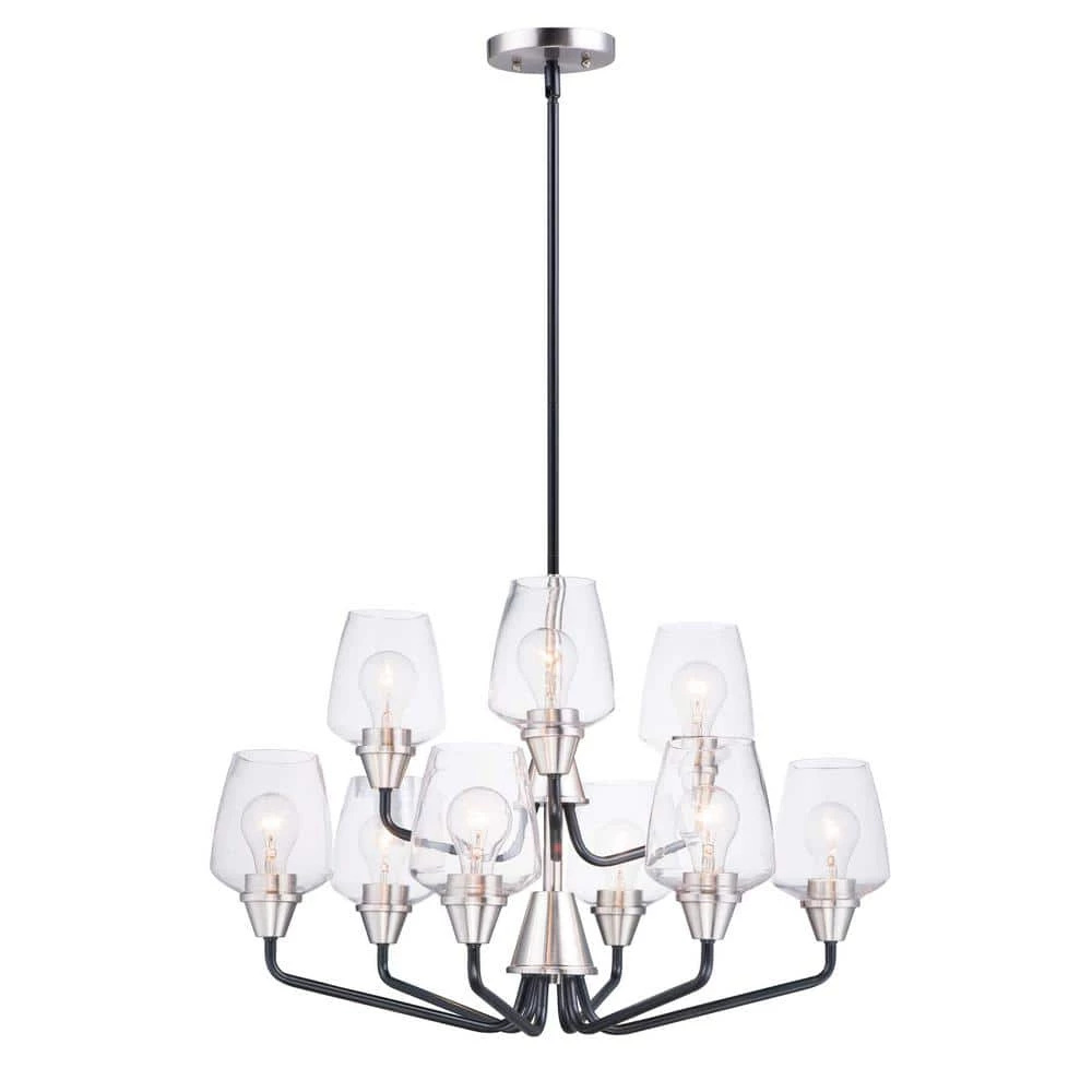 The Goblet 27 in. W 9-Light Black/Satin Nickel Chandelier with Clear Shade is a great addition to any indoor space. This high quality light can be used in a variety of applications. Provide both function and style to your indoor area with this wonderful fixture.