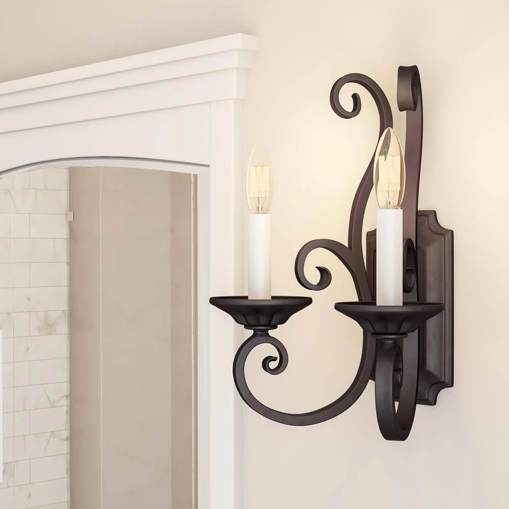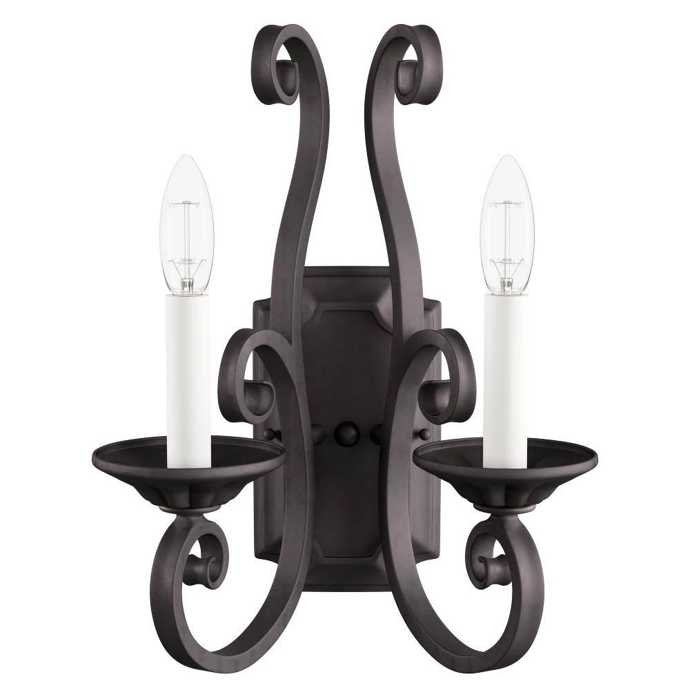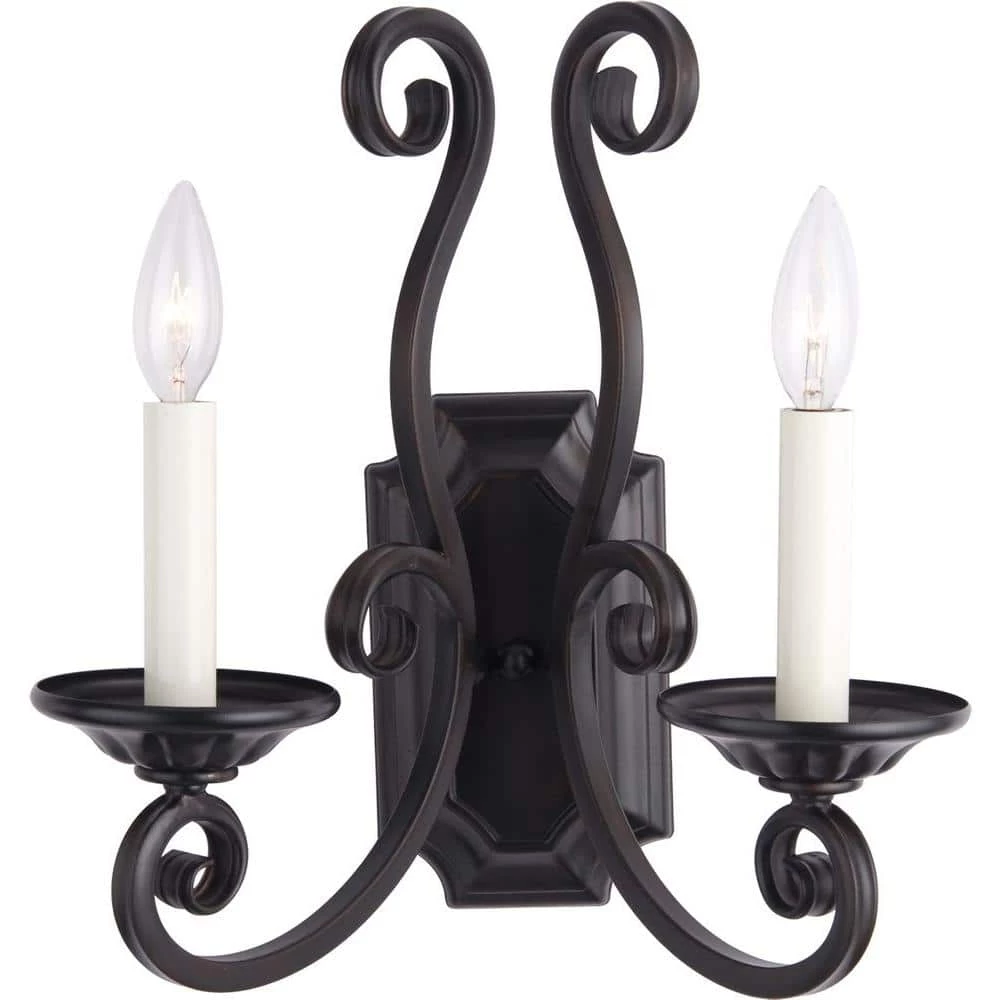 This Manor Two-Light Wall Sconce refreshes your home’s lighting. It features an oil-rubbed bronze finish and a bisque shade for a classic look. It’s easy to install yourself with the included hardware and it uses two incandescent base bulb.