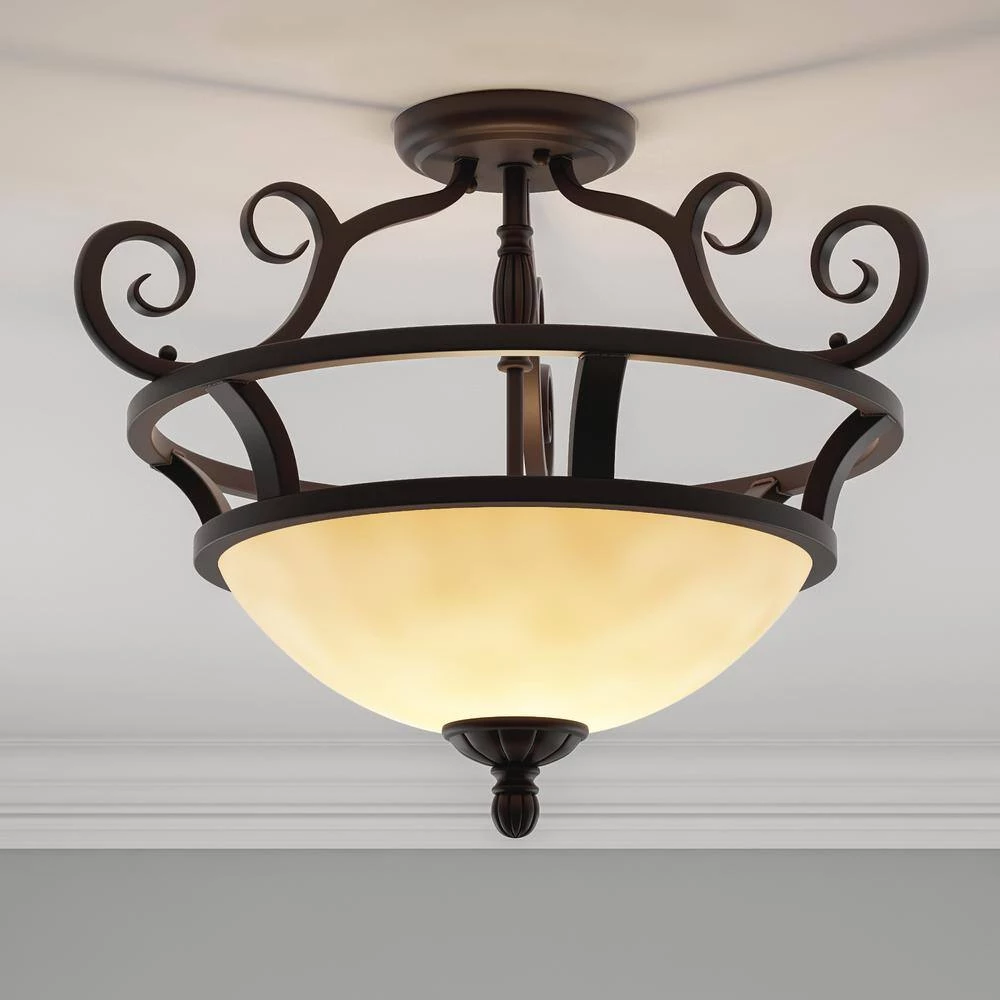 Brighten your home with the warm illumination of this 2-light fixture from the Manor Collection by Maxim Lighting. Featuring a classic oil rubbed bronze finish and frosted ivory glass shades, this elegant semi flush mount is ideal for a bedroom, foyer or living room. Includes instructions and all hardware for easy installation. The fixture uses two 60-W maximum, medium-base incandescent bulbs (sold separately).