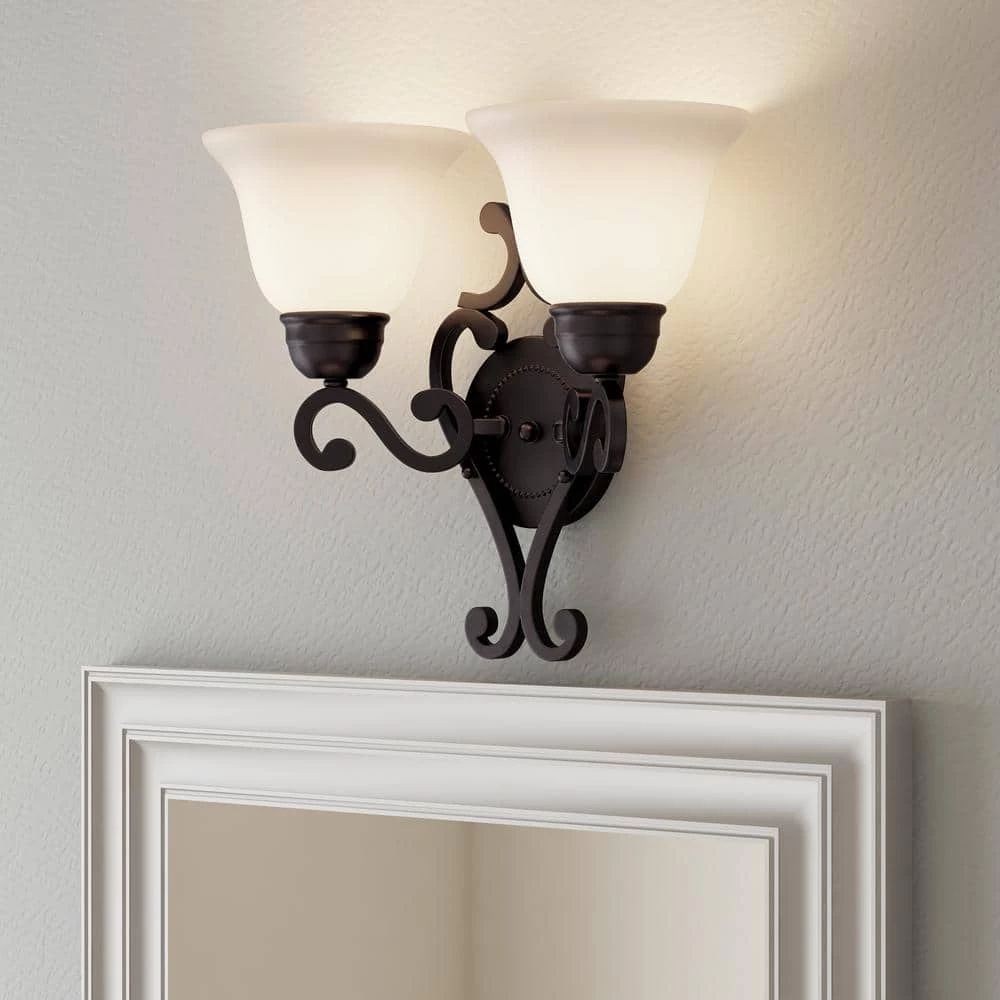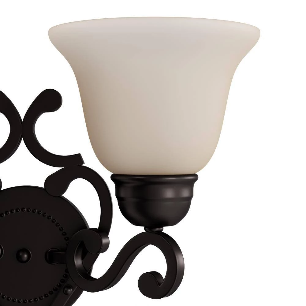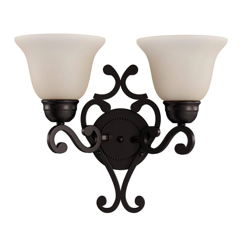 This Manor Two-Light Wall Sconce refreshes your home’s lighting. It features an oil-rubbed bronze finish and a bisque shade for a classic look. It’s easy to install yourself with the included hardware and it uses two incandescent base bulb.