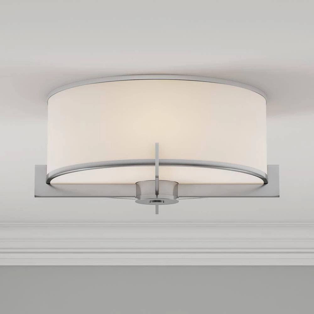 Maxim Lighting’s Nexus Collection is the true standard for contemporary lighting. The flat rectangular tube arm forms to a perfect angle and comes finished in choice of satin nickel or oil rubbed bronze, the white fabric drum shade is trimmed with metal rings in matching finish for a clean, tailored look. Shop the collection for Flush Mounts, Pendants, Chandeliers and Wall Sconces.