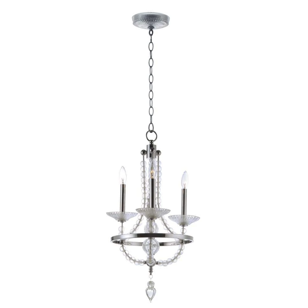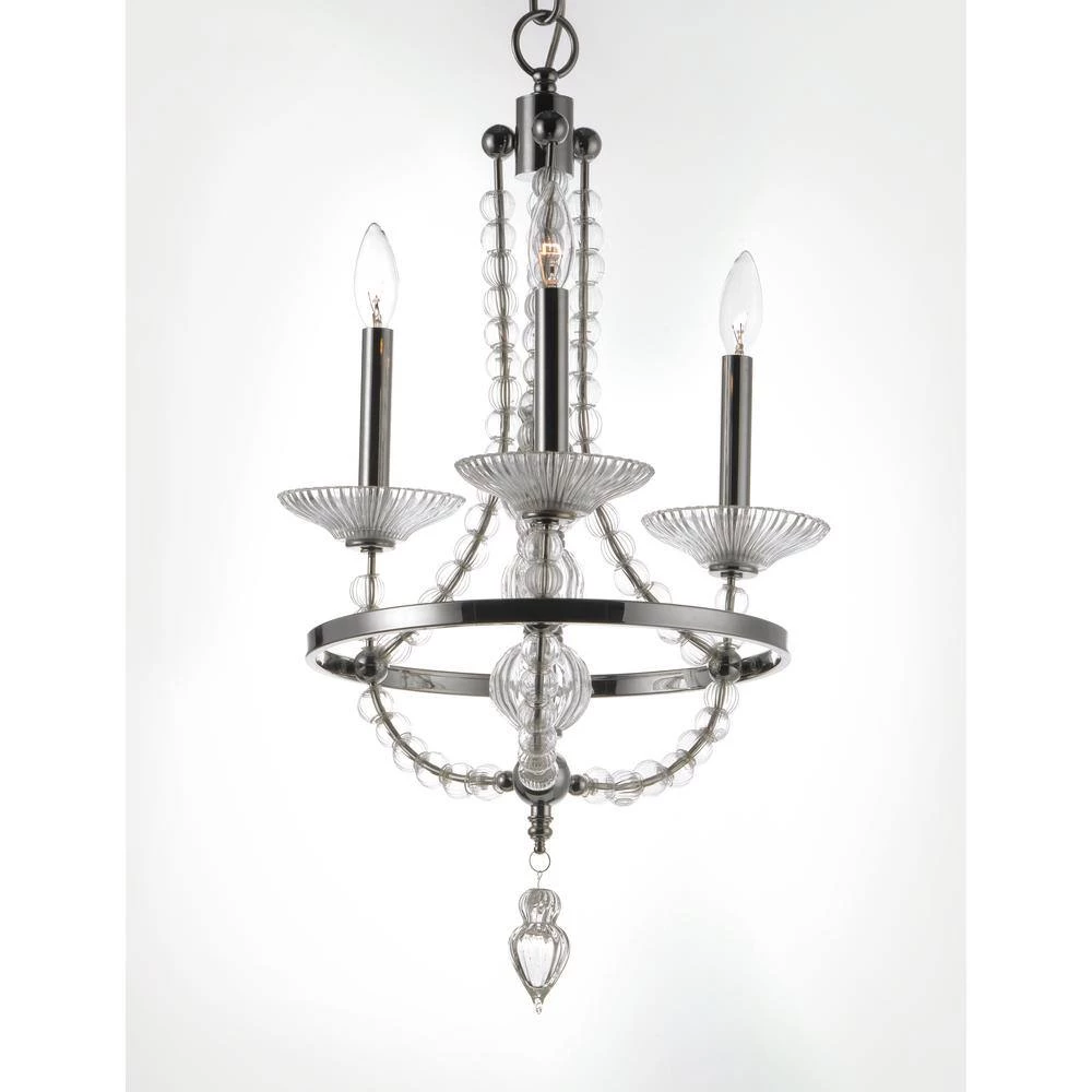 - Classic chandelier features frames of polished nickel adorned with hundreds of hand blown clear glass balls and fonts; ribbed design in glass adds texture and shimmer to this classic and delicate design