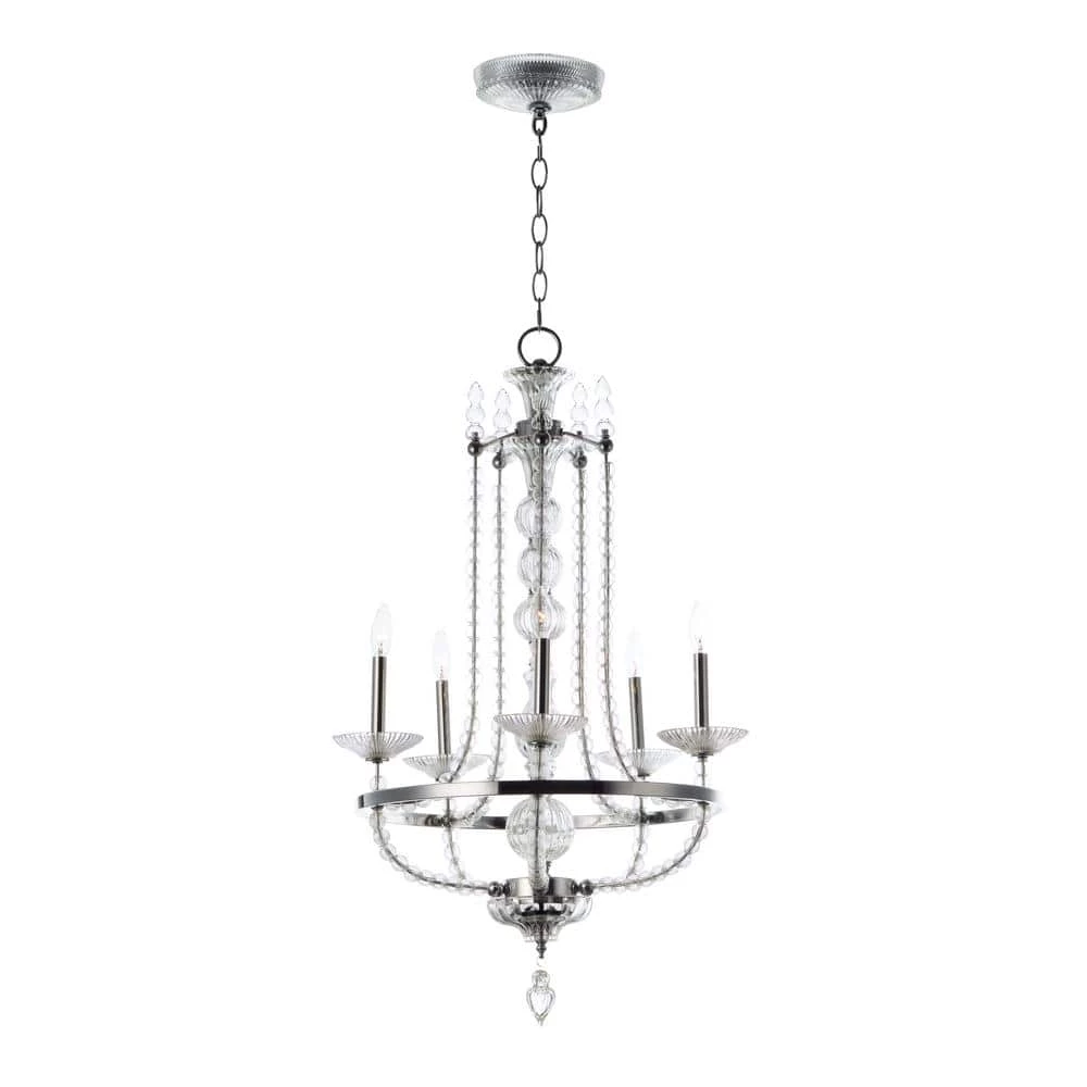 - Classic chandelier features frames of polished nickel adorned with hundreds of hand blown clear glass balls and fonts; ribbed design in glass adds texture and shimmer to this classic and delicate design