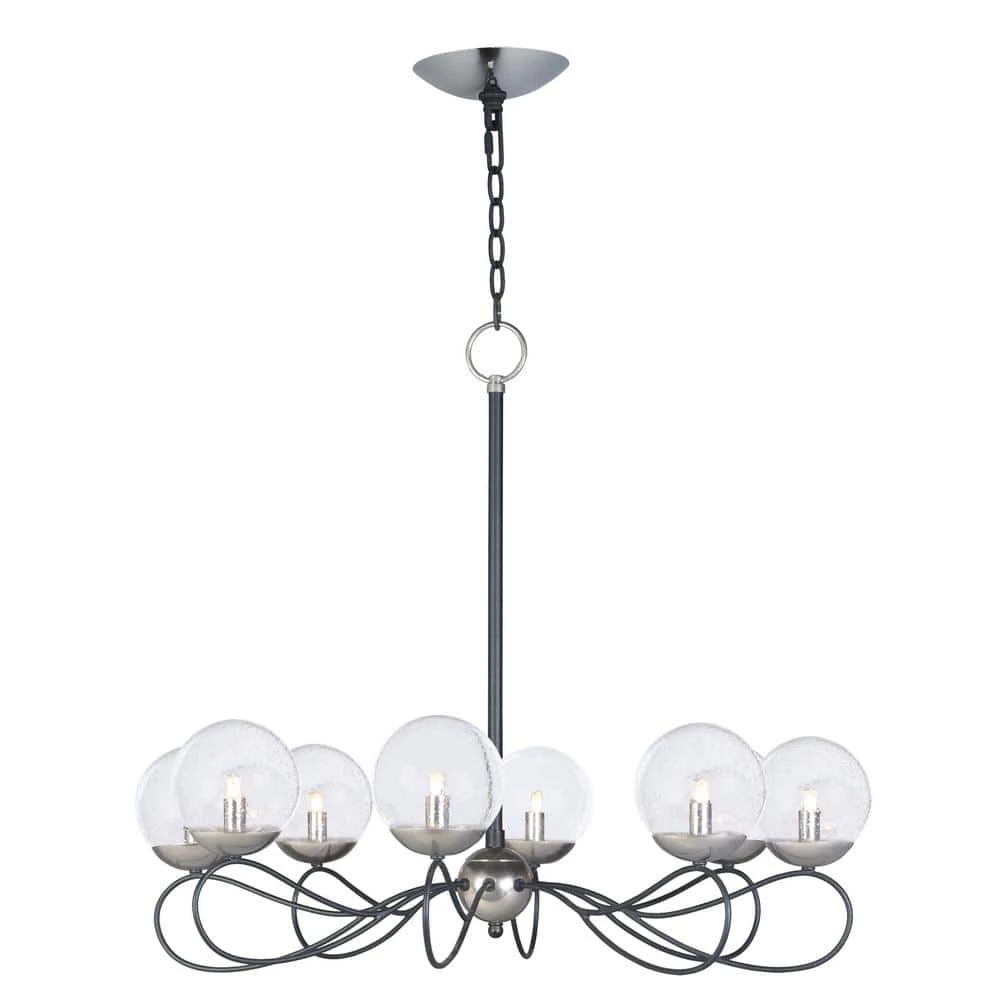 The Reverb 31 in. W 8-Light Textured Black/Polished Nickel Chandelier with Bubble Glass Shade is a great addition to any indoor space. This high quality light can be used in a variety of applications. Provide both function and style to your indoor area with this wonderful fixture.