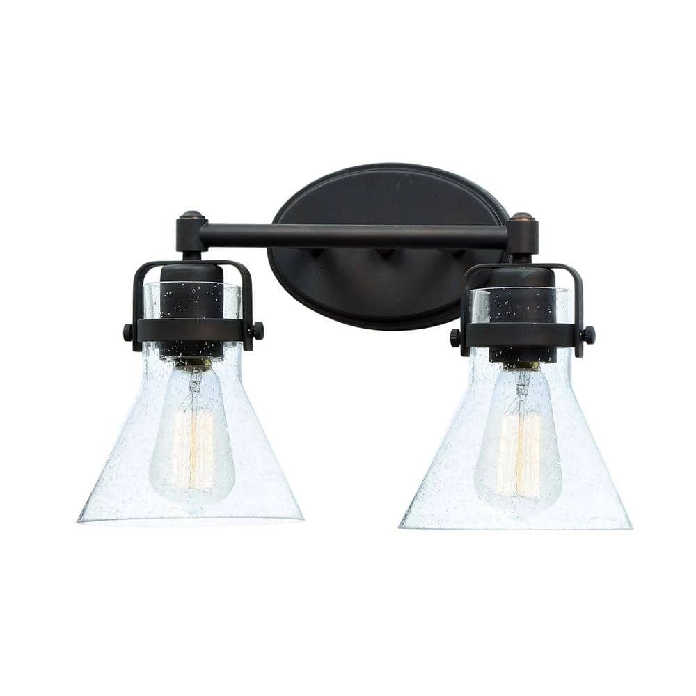 The Seafarer 15 in. Wide 2-Light Oil Rubbed Bronze Vanity Fixture is a great addition to any bathroom space. This high quality light can be used in a variety of applications. Provide both function and style to your bathroom area with this wonderful fixture.