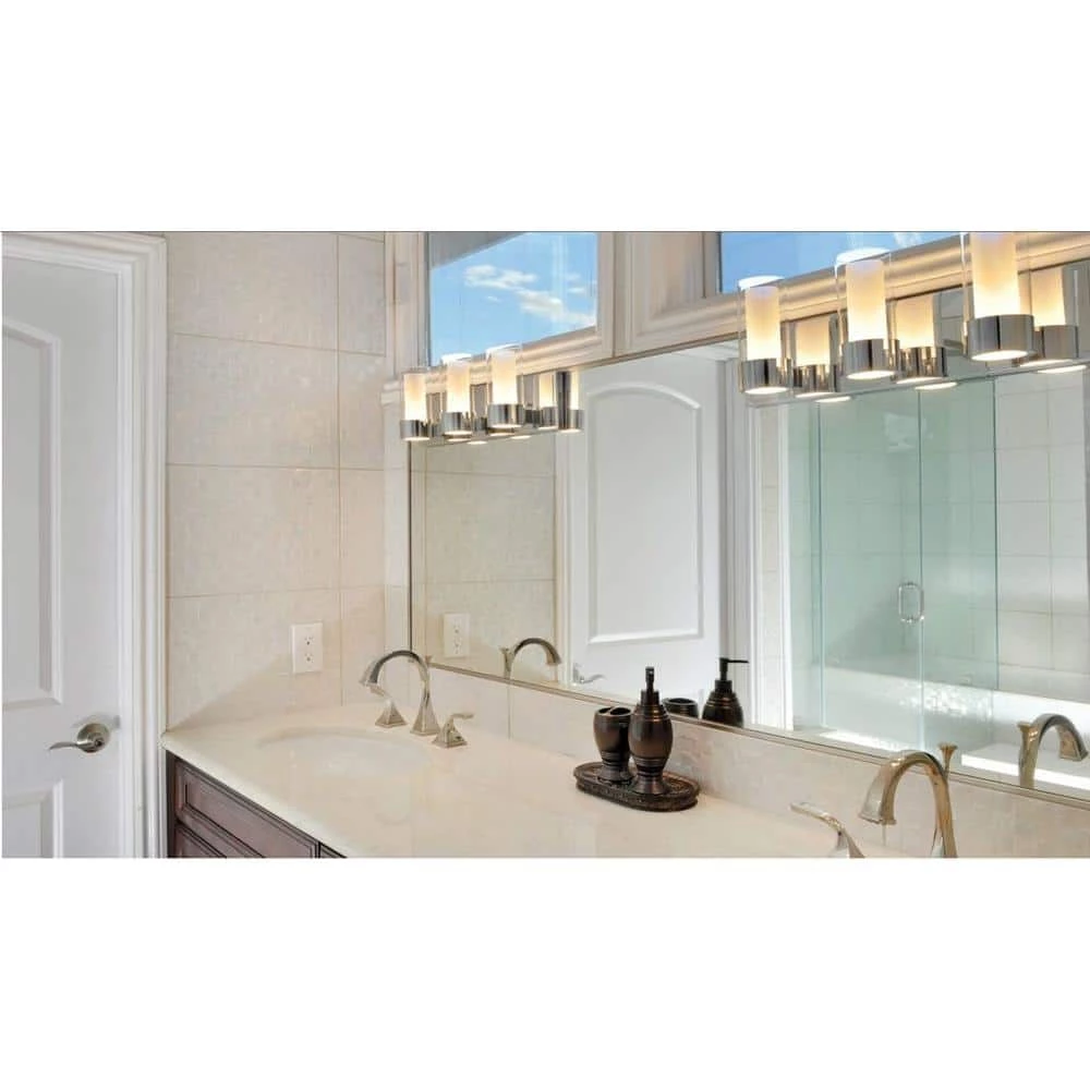 Maxim Lighting’s Silo Collection makes artful use of thin-profile rectangular tubing with a mirror-like Polished Chrome finish for a clean, contemporary look. A subtle Frost on the underside of the two cylindrical glass shades adds softness to the sleek lines, while the bright Xenon lamps are cleverly concealed in the cast metal ring allowing ample light to cast both upwards and downwards without glare. Shop the collection for Wall Sconces, Bath Vanitys, Pendants and Chandeliers.
