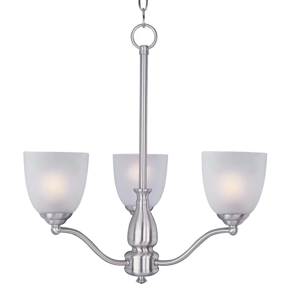 A transitional look that works in a broad range of interiors featuring metal frames finished in either Oiled Rubbed Bronze for the traditional home or Satin Nickel for a more contemporary look. Simple Frost glass shades compliment the overall design. This fixture will compliment any room with its beautiful look.